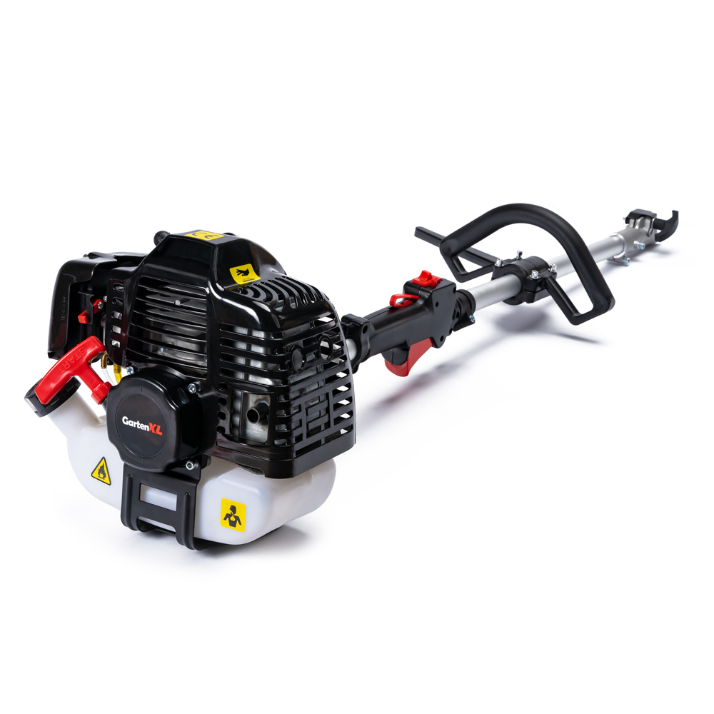 Benzinski motorni trimer GartenXL 5v1 je višenamjenski uređaj koji možete koristiti za košenje, podrezivanje i piljenje. S priloženim nastavkom doći ćete i do teško dostupnih mjesta, a nož s tri zuba osigurat će lako košenje i najzaraslijih površina.
