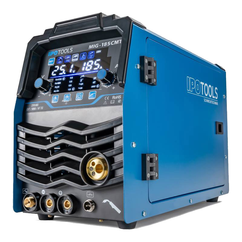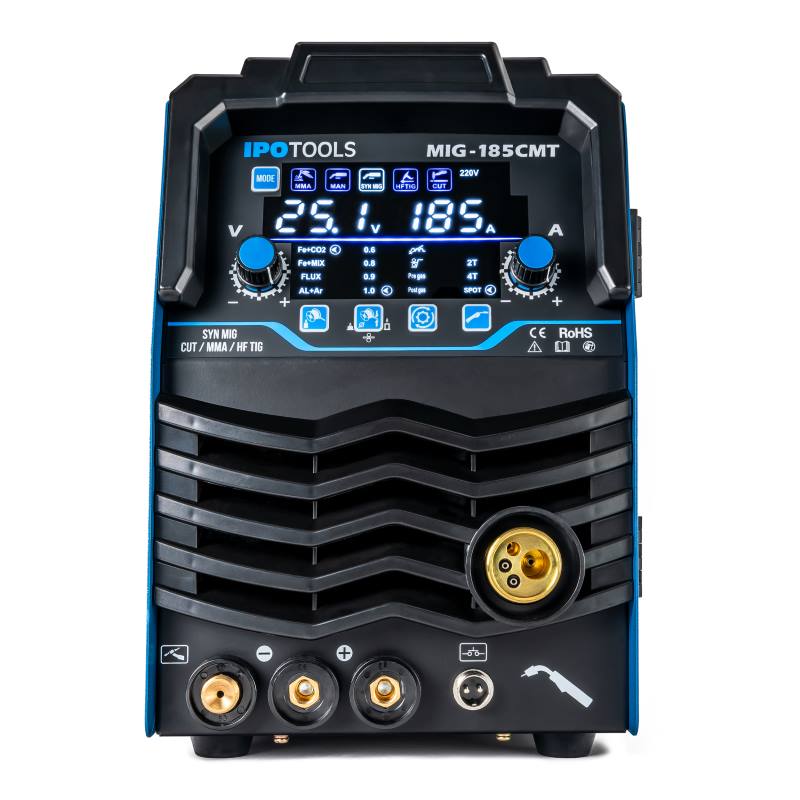 7u1 IPOTOOLS MIG-185CMT multifunkcijski aparat za zavarivanje, ističe se svojom svestranošću jer nudi širok spektar funkcija zavarivanja. S njim možete zavarivati MIG/MAG, SYN, FLUX, HF TIG, LIFT TIG, CUT i MMA.