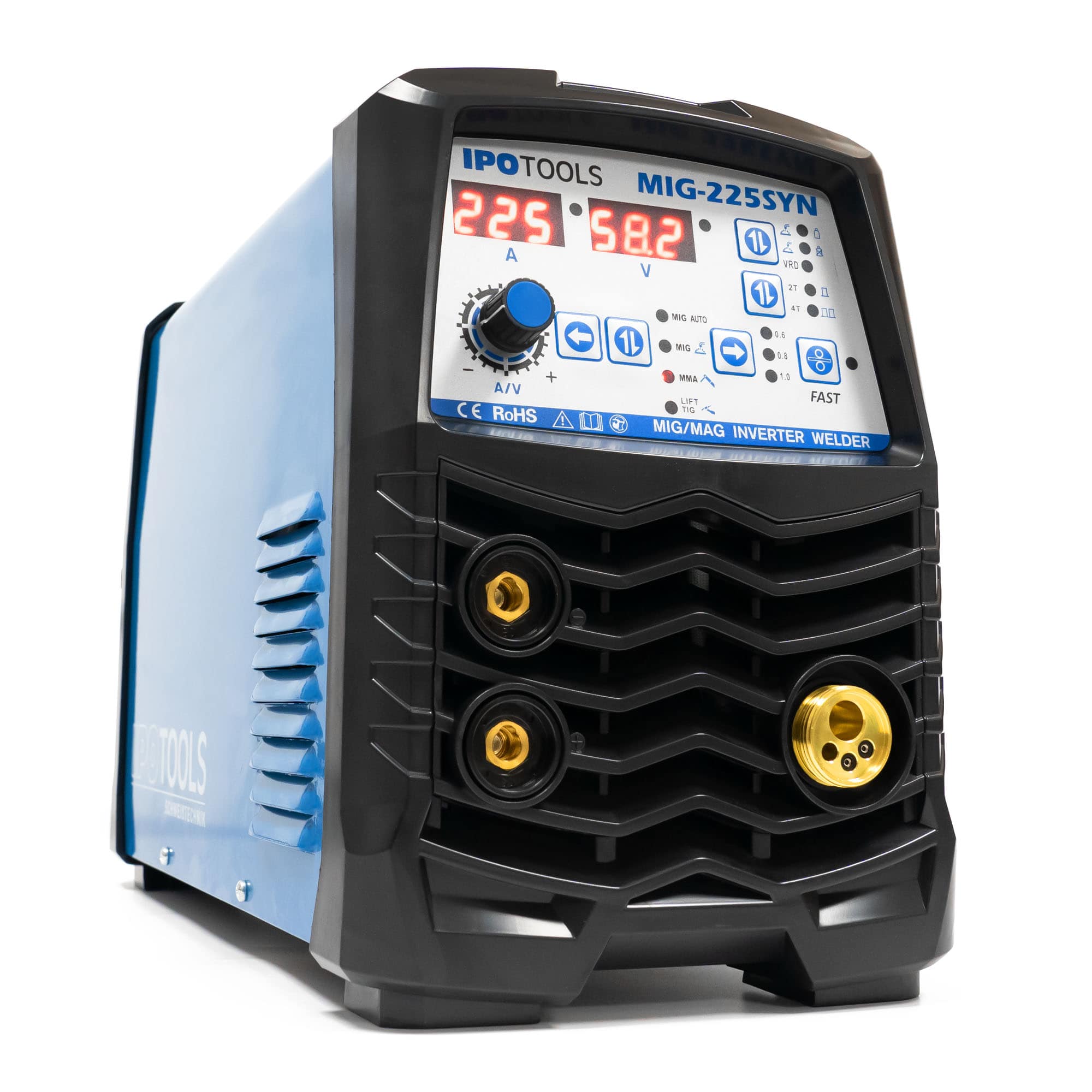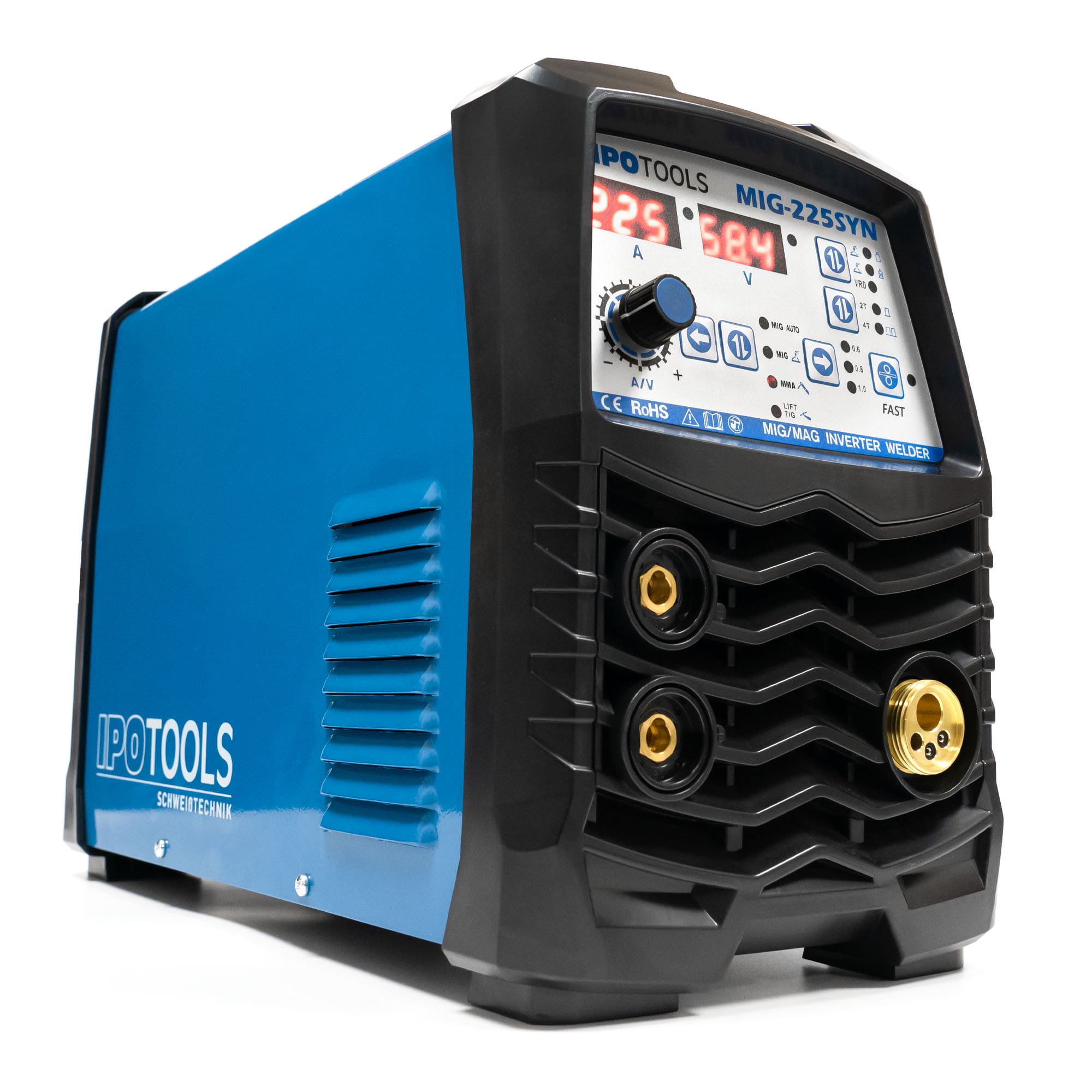 IPOTOOLS MIG-225SYN je kvalitetan i promišljen inverterski MIG MAG aparat za zavarivanje 5 u 1 s digitalnim zaslonom, koji u svojoj klasi impresionira svojom funkcionalnošću, jednostavnošću korištenja i izvrsnom kvalitetom.